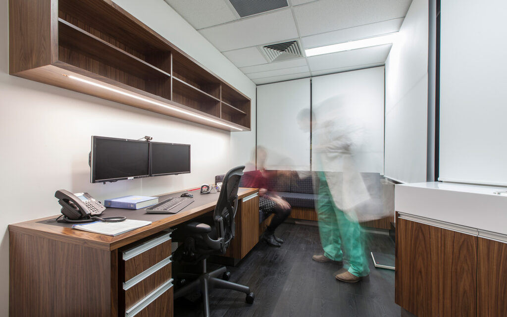 EVE Health’s sophisticated and relaxed configuration of clinician rooms, examination rooms and administrative support facilities spiral out from a reception and main entry hub. The tenancy enables a comprehensive service be provided to women for all their gynaecological, reproductive health and pregnancy related needs. Sited adjacent to Queensland Fertility Group, EVE Health benefits from the array of laboratory resources and direct access offered to the clinician group. The essence of maintaining patient focus throughout the experience is enabled through the careful planning, utilising a neutral palette of materials and finishes and simple patient flow within the tenancy, supplying abundant natural light and client privacy.
